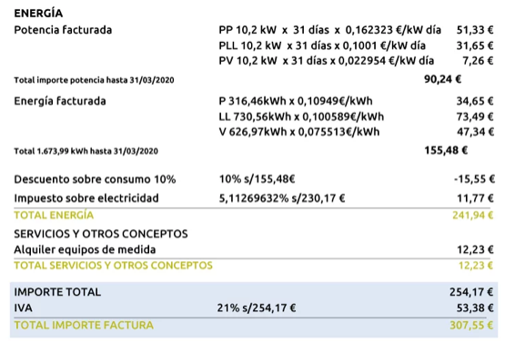 Este término hace referencia al precio que los clientes tienen que pagar por la electricidad que tienen contratada. Para pymes con potencia superior a 15kW la facturación será distinta.
